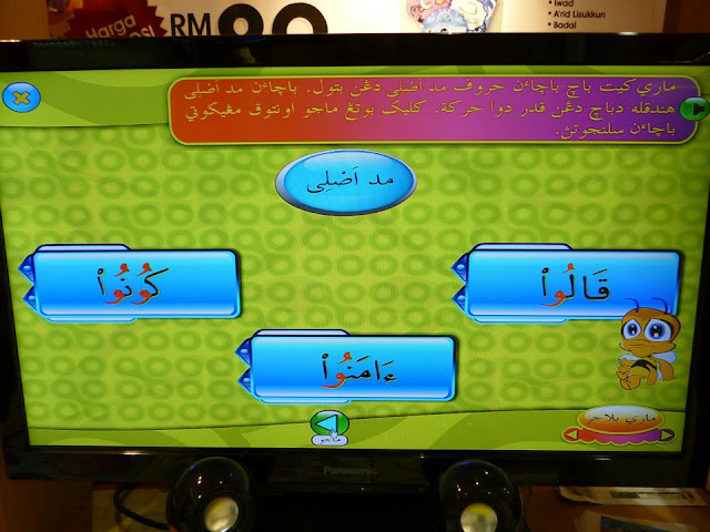 skrin tv, pc, atau lap top, gerakan 'mouse' membolehkan anak-anak memilih 'pembelajaran' jawab soalan 'tajwid mudah' atau ulangkaji yang menyeronokkan.